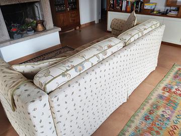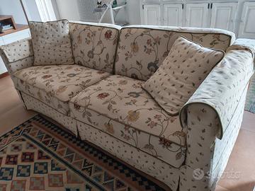 Vendo divano tre posti stile country rivestito in tessuto con motivo floreale tradizionale e bordini a contrasto. Misure: - 210 x 86 cm Smontaggio e trasporto a carico dell'acquirente. Ritiro SOLO a mano zona Cerenova. Astenersi perditempo e affaristi!
