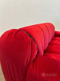Divano Strips di Cini Boeri per Arflex – Completamente rifoderato in velluto rossoIconico divano modulare Strips, progettato da Cini Boeri (insieme a Laura Griziotti) nel 1968-1972 per Arflex. Un vero e proprio classico del design italiano, premiato con il Compasso d’Oro nel 1979 e oggi esposto in numerosi musei di design nel mondo.Il sistema Strips ha rivoluzionato il concetto di imbottito grazie alla sua fodera trapuntata completamente sfoderabile, ispirata al sacco a pelo: pratica, lavabile e facilmente sostituibile. La struttura è in metallo e multistrato di pioppo, con imbottitura in poliuretano a densità differenziata che garantisce comfort e resistenza nel tempo.Questo esemplare è stato completamente rifoderato con un pregiato velluto rosso di alta qualità, di un rosso intenso e vibrante che dona al divano un carattere forte, contemporaneo e scenografico. Il velluto esalta la trapuntatura tipica del modello, creando bellissimi giochi di luce e ombra, e rende il pezzo perfetto per interni moderni, loft o ambienti che vogliono un tocco di audacia e calore.
