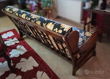 Vendo divano usato, tenuto benissimo, strutturato in legno e fodere di ricambio. Lunghezza di circa 2 metri. Prezzo trattabile, ritiro a carico dell'acquirente.