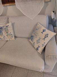 Divano come nuovo, ottime condizioni comodissimo. Divano a righe bianche e celesti, in vendita per cambio arredamento.
