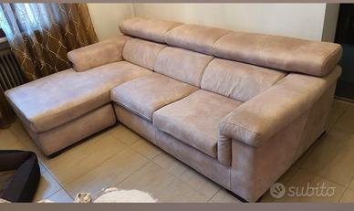 divano con chaise lomgue intercambiabile misure: 240 × 1.00 ×(1.70 completo di chaise longue) beige tessuto alcantara . vendo €400 ritiro in loco