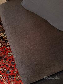 Vendo divano in tessuto di cotone grigio, nessuna macchia o imperfezione. Sospeso con gambe in argento. Lunghezza 3.05m profondità semi isola 1.60m profondità seduta normale 90cm senza cuscino - con cuscino 65 cm. Sfoderabile.