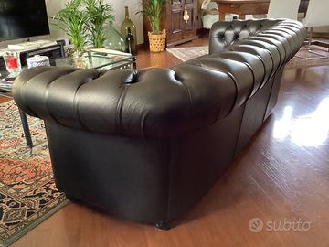 Divano tipo Chesterfield 3/4 posti vera pelle nera