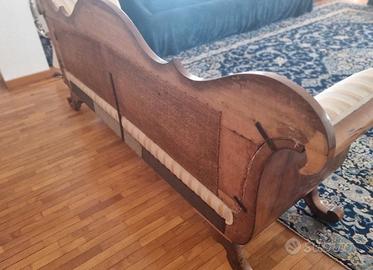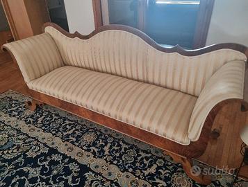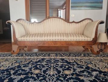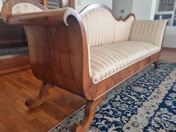 Divano, Tomana d'epoca primi '800 lastronato noce, perfetto in ogni dettaglio, è stato eseguito solo un inevitabile restauro all'imbottitura ed il rivestimento. misure: 210x80 h.90