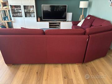 Divano di ottima fattura. Molto comodo e non sfondato. Divano a giro sfoderabile interamente. Composto da un angolo, una seduta da due e una da tre. Misure 294x246x93h circa.