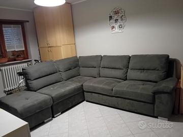 Divano letto angolare (sinistra) con puff contenitore, colore grigio scuro ,tessuto
