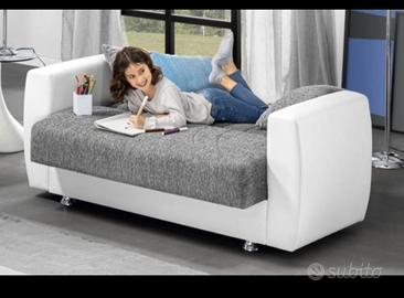 Vendo divano NUOVO IMBALLATO trasformabile, apribile, con contenitore, + due cuscini, rivestimento eco bianco e tessuto grigio, misure 158X84X91 ho fattura e 16 mesi di garanzia. Vendo causa errore di misura e non lo cambiano con altro modello. Ritiro a LEINI €180