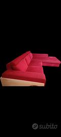 Vendo divano in tessuto conChaise-longue. Colore rosso. Il divano è del 2007 ma MAI USATO. Sempre coperto da un lenzuolo e con Boiserie in pioppo fatto su misura tutto intorno al divano. Il Boiserie lo regalo. Larghezza divano 2920. Lunghezza Chaise-longue 2000. Larghezza Chaise-longue 1100. Divano perfette condizioni, a parte un angolo visibile in una foto. No corrieri.. Condizione imprescindibile è lo spostamento a carico dell'acquirente in quanto per me non gestibile. €.500,00 Non utilizzare la email in evidenza, bensì il 348 4921011