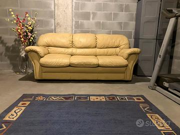 Divano pelle, colo ocra , 3 posti, tenuto bene