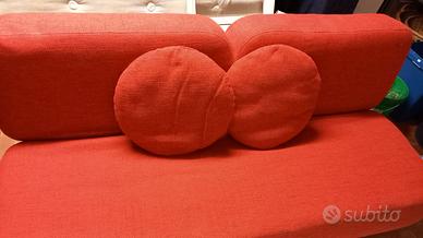 Divano rosso trasformabile in letto a una piazza. Misure 190x107, altezza 81cm Disponibile biancheria su misura.