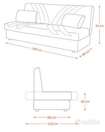 Si tratta di un divano letto contenitore. Seduta e schienale offrono la giusta resistenza per garantire comodità e confort. Il rivestimento in tessuto è particolarmente pratico da pulire e mantenere. Le sue misure contenute permettono di posizionalo anche in spazi molto piccoli come mini appartamenti o monolocali. Trasformare il divano in letto è semplicissimo e senza sforzo; altrettanto facile farlo ritornare nella funzione divano.