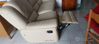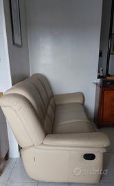 DIVANO TRE POSTI RIVESTITO INTERAMENTE IN PELLE COL BEIGE/AVORIO. PELLE E IMBOTTITURA SONO IN OTTIME CONDIZIONI, ANCHE IL POGGIAPIEDI E LO SCATTO SONO PERF ETTAMENTE FUNZIONANTI. LA SPEDIZIONE E TRASPORTO SONO DA CONCORDARE CON L'ACQUIRENTE.