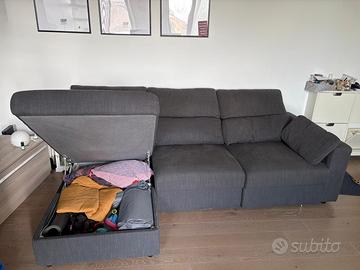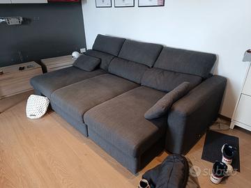 Divano tre posti con penisola. Modello Eskilstuna. Ikea. La penisola può essere messa sia a destra che a sinistra ed è contenitore. Due sedute scorrono in avanti. I poggia testa hanno i meccanismi e tre diverse posizioni. Nelle foto non è presente uno dei due braccioli perché è già stato smontato. Gli unici due difetti sono due macchie in cui il tessuto è leggermente scolorito a causa di un prodotto per pulire usato nelle(si vede nelle ultime due foto). In realtà è un divano tenuto molto bene, non è stato usato da bambini, né ci sono caduti cibi sopra. Lo cambio per trasloco e necessità di dimensioni diverse. Il prezzo è trattabile.