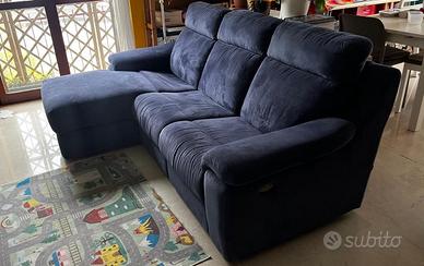 Rivestimento in velluto blu. Il divano è in uso da un anno circa, sempre con copridivano. Vendo per cambio modello. Prezzo trattabile.