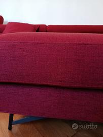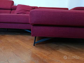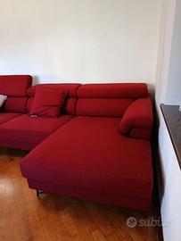 Divano usato pochissimo, pari a nuovo. Color bordeaux, piedi in ferro. Tre posti con penisola, testiere regolabili. Allungabile nella zona delle gambe, può diventare un comodo divano letto. Comprato nel 2023 in mobilificio.