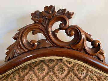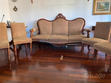 Bellissimo divano antico autentico larghezza metri 2, profondità cm. 60 altezza da terra spalliera cm. 110 con quattro poltroncine uguali. Ritiro zona Balduina a carico dell’acquirente