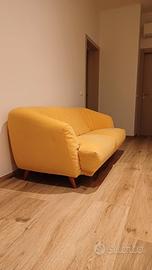 vendo divano Dema in ottime condizioni, colore giallo sole, piedini legno ciliegio.