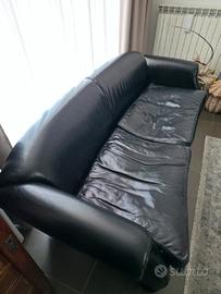 Vendo divano in Pelle nera marca Doimo originale e pulito sempre con prodotti specifici per la pelle. È stato conservato con cura, in buonissimo stato generale ad eccezione delle sedute che vanno fatte imbottire.