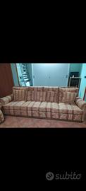 "Vendo set completo da salotto in tessuto classico con fantasia damascata e rigata sui toni del beige/marrone. Il set è composto da: un divano ampio a quattro posti lunghezza totale cm 230, molto comodo e spazioso, ideale per una famiglia o un salotto grande; due poltrone coordinate nello stesso stile e tessuto, perfette per completare l'arredamento. Il set è stato tenuto con cura. Segnalo, per massima trasparenza, una scucitura su uno dei braccioli del divano. Il danno è limitato alla cucitura. Per il resto, le sedute sono integre e la struttura è solida. PREZZO TRATTABILE