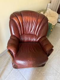 divano tre posti e due poltrone in pelle