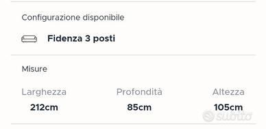 Acquistato settembre 2022 da Poltrone e Sofà, il modello è Fidenza, seduta poco profonda, le misure sono nell' ultima foto. Il colore è grigio/blu cangiante a seconda della luce. Il divano è semi nuovo un vero affare;
