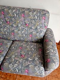 Vendo divano 3 posti vintage, motivo floreale, con il delicato contrasto tra il grigio, i fiori rosa e i petali verdi, è un classico che non passa mai di moda. Il divano è in perfetto stato grazie alla cura e all'attenzione con cui è stato mantenuto.