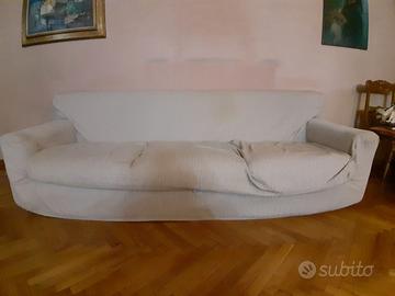 Il rivestimento dei cuscini sulla seduta è usurato e c'è un piccolo strappo sul cuscino di destra. Si consegna con anche copridivano.