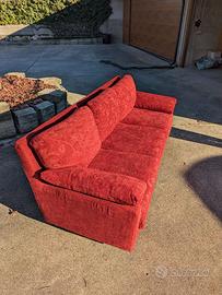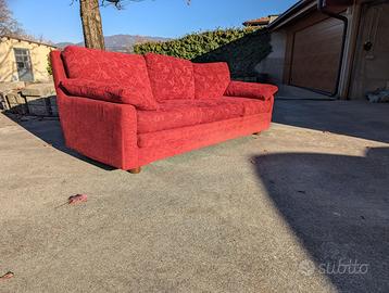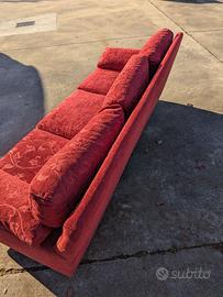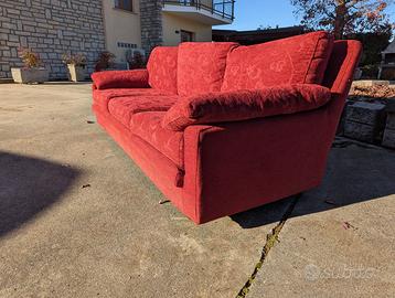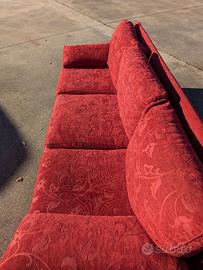 Vendo divano 3 posti in tessuto broccato rosso. Dimensioni 220x80x80. Il singolo cuscino per la seduta è 60x67. Il divano è degli anni 90, ma ha un telaio in legno molto resistente. Al tempo era stato fatto su misura. Il tessuto è più recente e non ha evidenti segni di usura