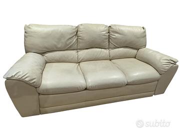 Divano tre posto in eco pelle color avorio mantenuto cime nuovo , motivo per cambio abitazione .