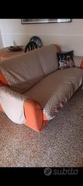Vendo divano tre posti non letto tessuto arancione e regalo il tavolino in vetro