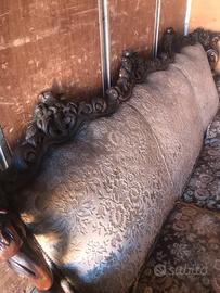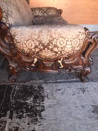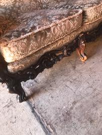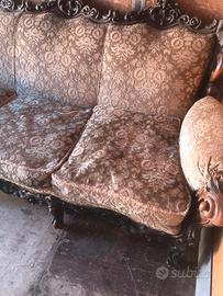 Vendo divano tre posti in legno intarsiato e tessuto molto bello mis 206 x100x100 no spedizione