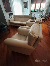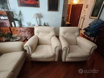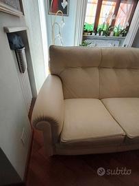 Divano 3 posti in pelle colore bianco molto ben tenuto vendo per inutilizzo. Divano Larghezza 180 Disponibili anche 2 poltrone sempre uguali