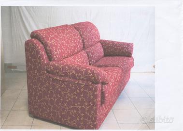 Divano tre posti stoffa sfoderabile colore base rosso con fantasia dorata. Ritiro Ascoli Piceno