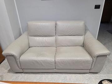 Divano Poltrone & Sofà in pelle, misure 94x194x96, colore grigio perla. Cuscino di seduta di sinistra leggermente screpolato.