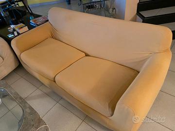 vendo divano usato marca Arflex lunghezza cm. 170 colore originale microfibra grigio chiaro con copridivano bassetti colore giallo due braccioli due cuscini sedute. Ritiro solo in loco non spedisco.