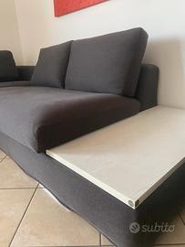 Perfetto per chi cerca un divano bello esteticamente ma anche funzionale, con un tocco moderno dato dalla mensola in legno integrata.