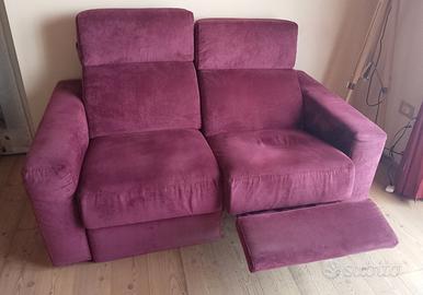 Divano 2 posti sfoderabile in tessuto alcantara colore vinaccia con alzata automatica separabile. Misure profondità 98 cm, larghezza 165 cm, altezza 103 cm.