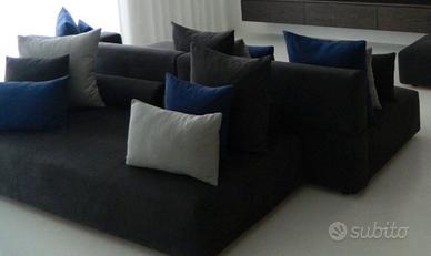 Divano twils componibile composto da doppia seduta anteriore e posteriore completamente sfoderabile in tessuto antimacchia idrorepellente grigio antracite