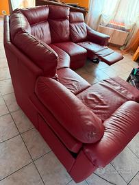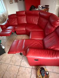 Divano angolare in pelle Color rosso porpora 5 posti 2 alzate elettriche Lunghezza max 4m