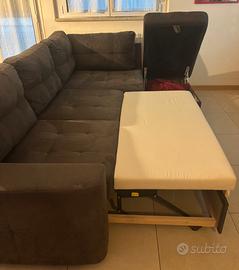 Vendesi divano trasformabile in letto, tenuto bene, con contenitore. Misure: lunghezza 237- lunghezza penisola 272 - lato corto 85 - seduta 63.