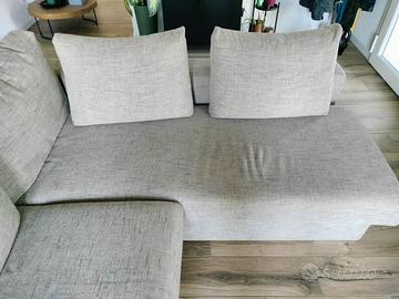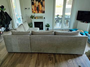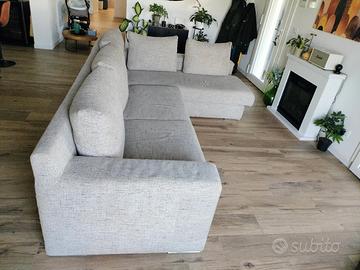 Vendesi divano usato in stoffa traforata, 100% MADE IN ITALY, acquistato 3 anni fa da un mobilificio. Il divano è un 3 metri x 2 metri (chaise longue). Cuscini removibili, completamente sfoderabile e lavabile, piedini in acciaio. Comodo, solido e robusto (a prova di cani e gatti!) Presenta qualche filo tirato e qualche graffio sui lati. La stoffa delle sedute è leggermente consumata. Ottimo prodotto. Ritiro e/o spedizione a carico dell' acquirente.