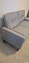 Divano 2 posti grigio, con cuscini spessi e sfoderabili, presenta anche due tasche laterali portaoggetti.