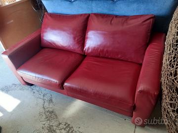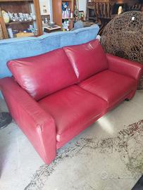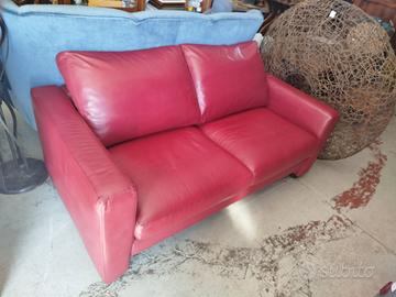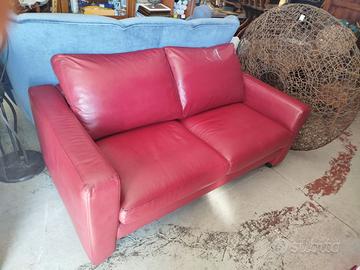 Divano vera pelle 2 posti colore rosso cardinale