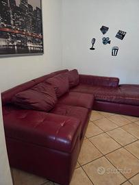 Vendesi divano in vera pelle color bordeaux/granata. Pagato nuovo 2500€ In buone condizioni . Solo consegna a Mano. Marca: Semeraro Mobili Dimensioni H:60cm L:275cm P: 220cm ( parte penisola ) Prezzo 250€