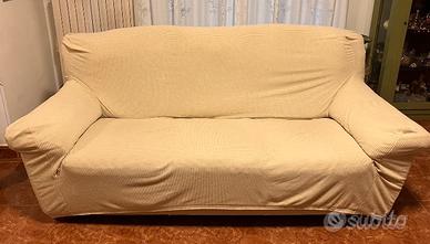 vendo divano 3 posti in Vera Pelle colore avana + copridivano in tessuto. usato ma in ottime condizioni.