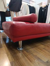 Divano in vera pelle colore rosso. Stile minimal adatto per un arredo curato e stiloso. Il divano si trova in un punto vendita. Trasporto a carico dell'acquirente. No perditempo. Lunghezza 170 Larghezza 76 Altezza 36