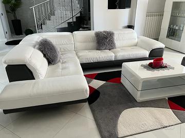 Divano vera pelle bianco e grigio