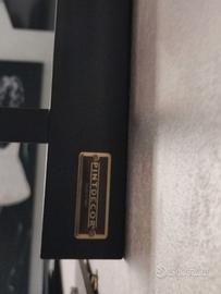 In aggiunta, vendo libreria Pintdecor, due ripiani, in legno lucido colore nero, raffigurazioni in foglia argento.