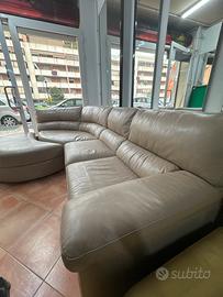 AFFARE!!! Divano vera PELLE poltrone e sofà colore tortora chiaro. Pelle sempre trattatata con prodotti appositi. Misure: angolo 185 cm laterale 160cm totale 245cm + PUFF AMOVIBILE A MEZZA LUNA BELLISSIMO AFFARE Consegna gratuita in zona limitrofe ROMA EST PONTE DI NONA