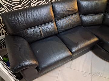vendesi divano vera pelle coccodrillata pagato 3100€,causa trasloco e mancato spazio x mettere salone,presente (non in foto mai usato puff cm penisola da arredo o aggiunta alla parte tonda).da rifare una seduta cm in foto.ottimo affare considerando la qualità e il prezzo di vendita.astenersi da contro offerte.